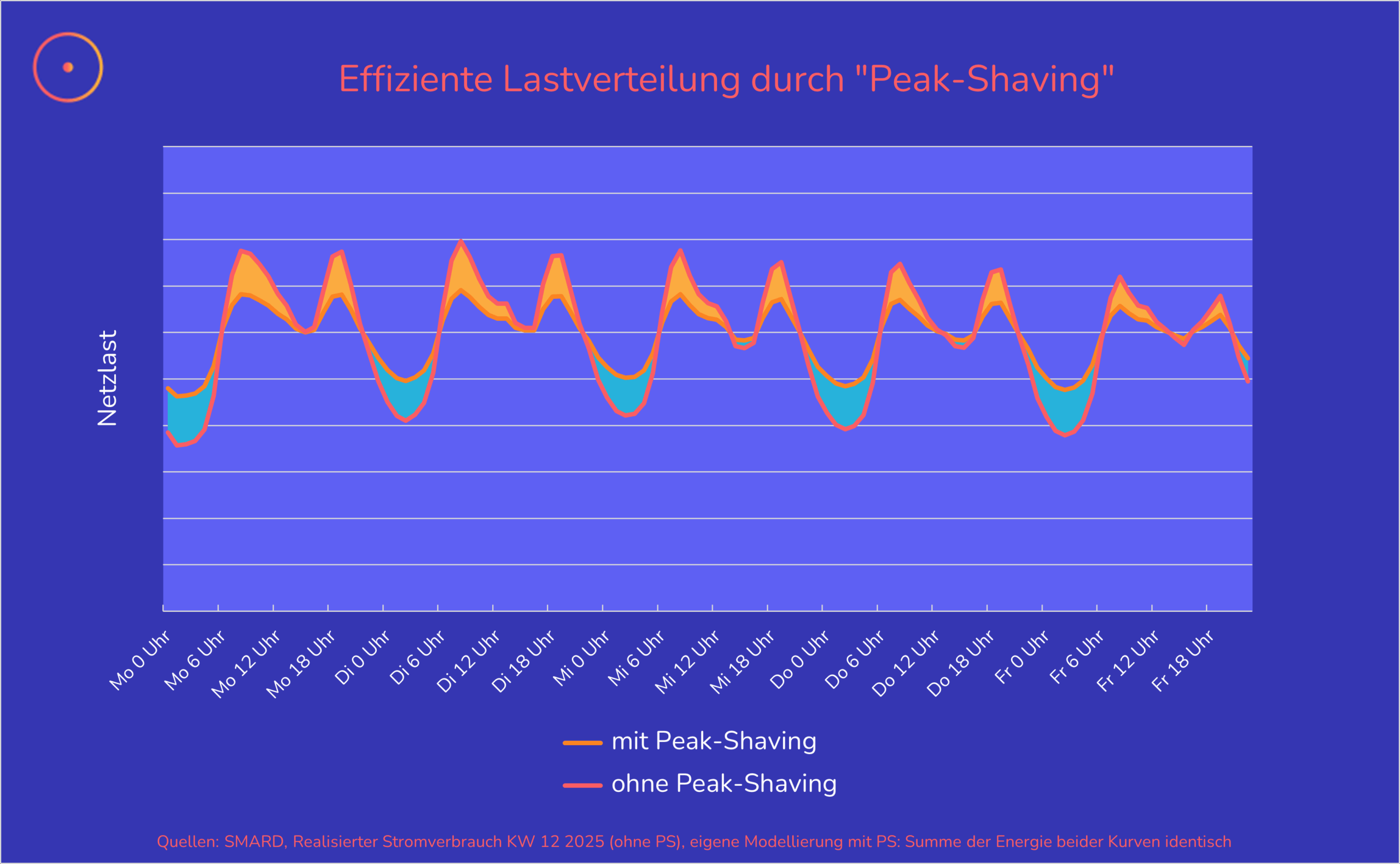Genau das ist der zweite Effekt, auf den § 14a EnWG abzielt. Er gibt Verbraucher:innen durch die Dynamisierung der Stromkosten – also der Netzentgelte und des Strompreises – monetären Anreiz, flexible Verbräuche in Zeiten geringer Netzauslastung zu verlegen. Dieses sogenannte Peak-Shaving („Spitzen-Rasieren“) erlaubt es StVE-Betreibern, von dynamischen Netzentgelten und (teilweise) von günstigen Börsenstrompreisen zu profitieren. Das Gesetz ist also so designt, dass sich das kostenbewussteste – betriebswirtschaftlich rationale Verhalten – von Verbraucher:innen volkswirtschaftlich sinnvoll auswirkt.